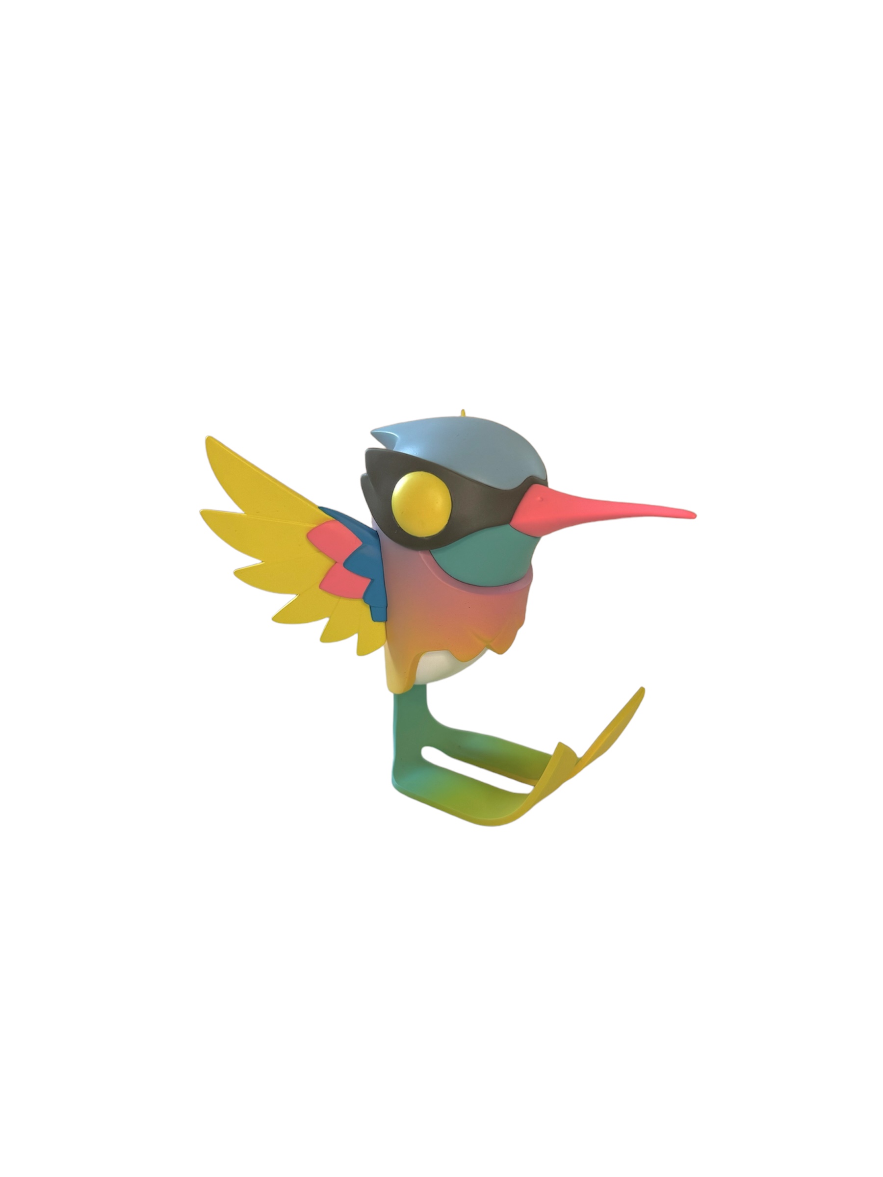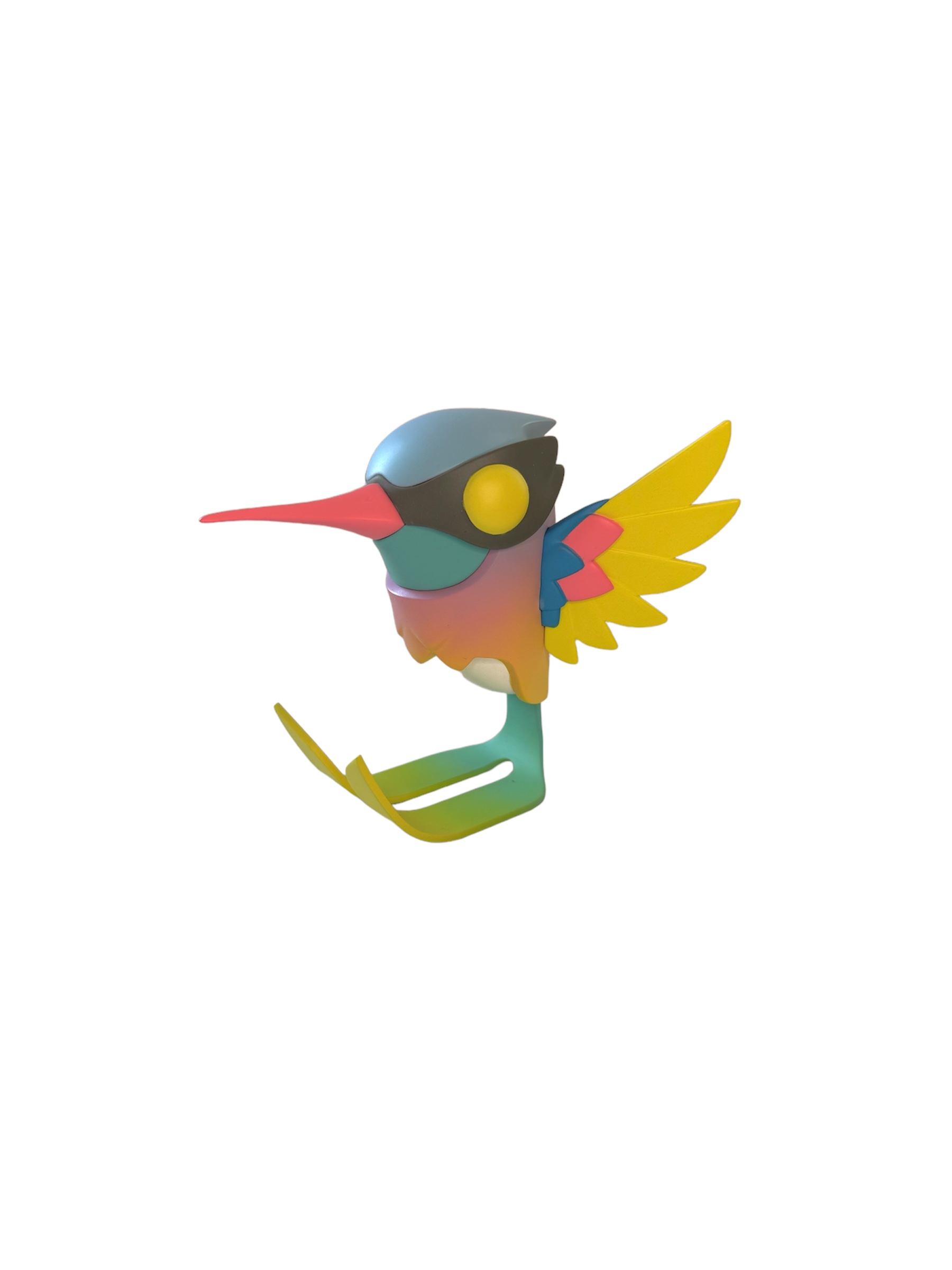 Der etwa 10 Zentimeter große Kolibri aus mattem Vinyl zwitschert in fünf ansprechenden und typisch frech-frohen Farben für euch und kommt in einem eigenen, flauschigen türkis-magentafarbenen Nestchen zu euch!