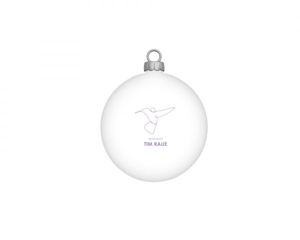 Das i-Tüpfelchen? Unser Kolibri-Logo in zartlila für die Prise Restaurant-Tim-Raue-Zauber am Baum. Ob Sie klassisch dekorieren oder etwas Raue-Chic wollen – diese Kugel ist das perfekte Upgrade für jedes Fest. Die Kugel wird standesgemäß in einer Geschenkbox mit Restaurant-Tim-Raue-Christmas-Club Banderole geliefert!